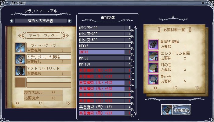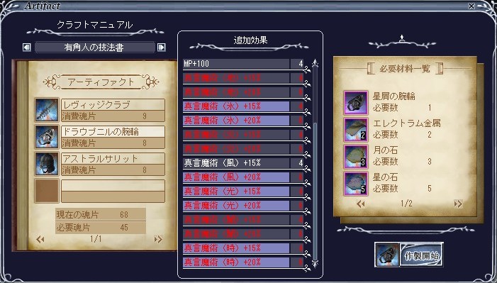 必要数10個揃ったのでさっそくドラウプニルの腕輪作製